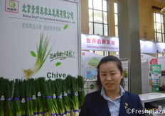 Mao Yongxi from Beijing Xinfadi Yongxi Shangmao company. She sells all kind of vegetables, mostly leek. // 北京新发地勇习商贸有限公司董事长毛勇习。她销售各种蔬菜,主要是韭菜。