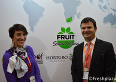 HORTGRO Elzette Schutte and Jaques du Prez from HORTGRO. They would like to export their blueberries to China, though there is no access yet. The blueberry industry in South Africa is fast developing, it is good for the economy and could benefit to decrease the unemployment. They now already export to the UK, Europe, Middle East, Hong Kong and America. // 来自HORTGRO的Elzette Schutte和同事。他们想把蓝莓出口到中国,尽管还没有获得准入权。南非蓝莓产业发展迅速,这有利于经济发展,以及减少失业。他们现在已经出口到英国、欧洲、中东、香港和美国。