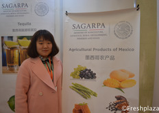Wang Ziying showing all the fruits from Pro México Trade and Investment. // Wang Ziying展示墨西哥投资贸易局的的全部水果。