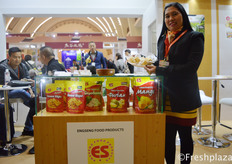 Jean Mendoza from Eng Send Food Products, they sell vacuum freeze dried mango, guyabana, durian and banana chips. // 来自Eng Send Food Products的Jean Mendoza,他们出售真空冷冻干燥芒果,榴莲和香蕉片。