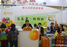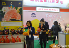 Beijing Qifan Youbao Shangmao Company, with their beautiful stand full with Fujian pomelos. // 北京奇帆柚宝商贸有限公司,他们漂亮的展位摆满了福建柚子。