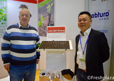 William J. Kuijpers from Delflandasia B.V., which delivers services as update existing greenhouses, turn key projects, new project consultancy and supervision of greenhouse installation. He is together with Mao Liu from van der Knaap who can deliver rooting and growing solutions. 来自Delflanda.B.V.的William J. Kuijpers,该公司提供更新现有温室、交接关键项目、新项目咨询和监督温室安装的服务。他和Van der Knaap的Mao Liu在一起,Van der Knaap提供生根和生长的解决方案。