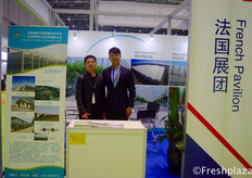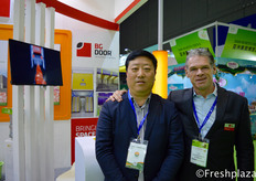 Left Mr. Liu Haitao from Beijing Rock Agricultural Science and Technology Co., Ltd., which is a high-tech greenhouse company specializing in the design, production, sales, installation and technical services of modern agricultural facilities (greenhouses, greenhouses, irrigation). And to the right Yue Li from Richel Group, which design, manufacture and develop complete greenhouse and shelter solutions for agriculture, construction and industry on a worldwide scale. 左边是北京蓉坤农业科技有限公司的采购部经理刘海涛,该公司是一家专业从事现代农业设施(温室、温室、灌溉)的设计、生产、销售、安装和技术服务的高科技温室公司。右边是法国瑞奇集团的中国地区负责人李岳,该公司在全球范围内设计、制造和开发了农业、建筑和工业设施的温室和遮蔽解决方案。