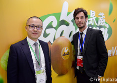 Harry Xu and Federico Milanese of Italian Jingold kiwi fruit. 意大利Jingold猕猴桃Harry Xu and Federico Milanese。