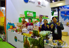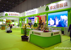 The large booth of Shandong Shouguang Vegetable Industry Group Co., Ltd with Mr. Zhang Qinghu. They are specialised in vegetables, they control the whole chain, from seedling to selling and distributing on the wholesale market. // 山东寿光蔬菜产业集团有限公司的大型展位以及该公司的张清虎。他们专门从事蔬菜运营,控制整个产业链的运作,从批发市场上的幼苗销售到分销。