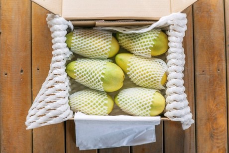 “套袋的金煌熟后成金煌芒果色金黄,果面干净无斑,是礼品的上好选择。同时采用套袋技术也杜绝了农药残留和虫害等问题。和台农贵妃相比金煌味道更清爽肉质有口感,甜度刚好不会腻,冰镇后切块放在碗里,全家共享口感更棒” “先生好芒”品牌创立者陈仕浩先生介绍道。