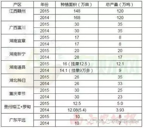目前江西赣州脐橙种植面积最大,但受黄龙病影响,种植面积减少了20多万亩。除此之外,在湖南省,湖北省,重庆市还有广西等其他省市区均有种植(详见下表)。