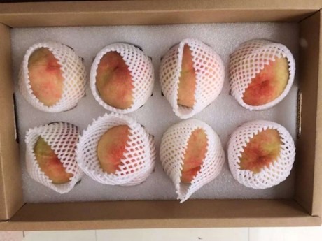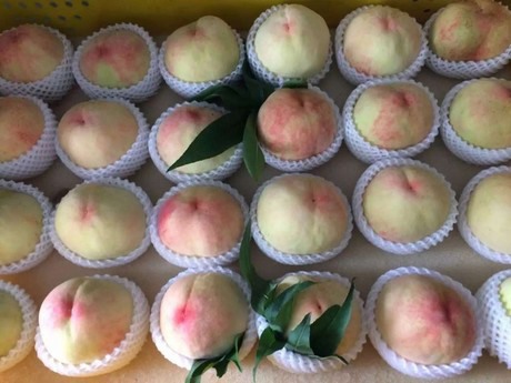"雨花露水蜜桃是阳山水密桃的代表品种之一,果实柔软多汁,香气浓,风味清甜,供应时间在两周左右。7月中旬,是阳山水蜜桃的全盛时期,也是产量最大的朝辉桃的成熟时间。朝辉桃个头更
