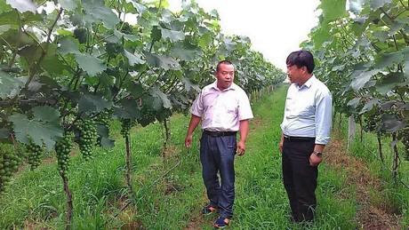 “为了达到客户标准,我们在种植阶段进行了疏叶疏果,将之前5000斤的亩产量降到3000-3500斤左右,这样就可以保证我们种出的户太8号颜色均匀,光泽靓丽,口感醇香。”