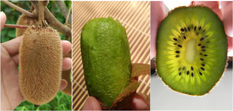 贵州修文猕猴中最有名的“贵长”品种猕猴桃,果型细长,绒毛偏硬,果肉翠绿,清甜爽口