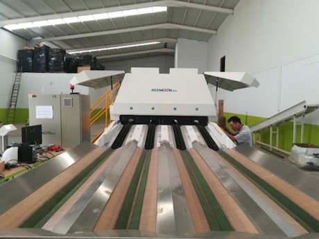 “针对这种情况,结合多年的研发经验,绿萌推出了该套全新的分选机。该设备采用了全程冷水输送系统,保障了预冷好的浆果能够在冷水环境保持恒低温,不易腐烂,同时避免了因与设备的碰撞而造成的浆果损耗。视觉系统我们采用彩色相机和红外相机双重检测,让樱桃尺寸、颜色、瑕疵的分选更精准和稳定,数据统计处理系统则是我们公司自主研发而成,在我们公司各水果分选机上都有使用。”