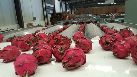 “主要分选标准是在不损坏果实的前提下按重量分选。称重结果非常准确,因为我们的电子称重系统是从法国进口的。火龙果的果皮很嫩,小叶子也是如此。客户欣赏这些叶子,当它们受损时,水果的市场价值就会下降。”