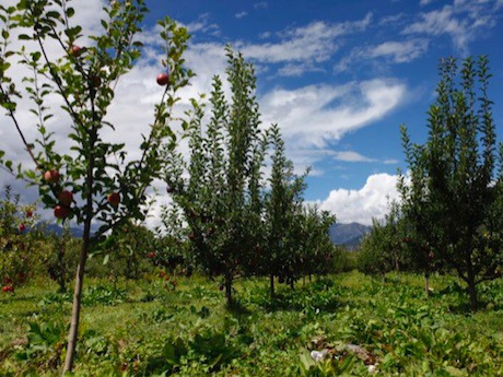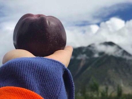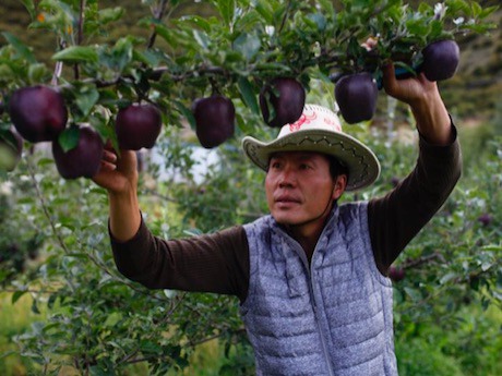 种植商在位于西藏林芝的黑钻苹果种植基地