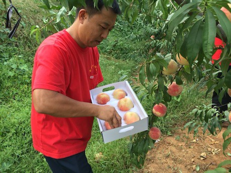 “与其他蜜桃品种相比,’百桃’所具有的高品质首先得益于其优越的生长环境。金龙山合作社地处沂蒙山区腹地,全年日照时间2200-3000小时,昼夜温差大。独特的气候,富含多种矿物质的山泉水,为“百桃”独特的口感风味注入了灵魂。其次,合作社董事长赵传博先生对农业发展规划有着独特的认知,他希望通过努力,对从基地到销售的各个环节实行标准化及规模化运作,在此基础上,他不仅斥巨资从绿萌选购了国内首批桃子糖酸分选线,还兴建了有机肥料研发中心、营养肥加工车间等配套设施。”
