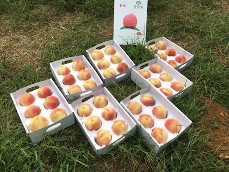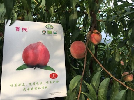 “这种高品质的蜜桃来自位于山东的沂水金龙山农业专业合作社,该合作社拥有占地1800亩的种植基地,主要种植品种为“百桃一号、百桃二号”,该基地现已获得美国欧盟有机认证、中国有机认证、出口基地备案以及自有工厂出口备案。所收获的蜜桃在’百桃’品牌下,今年首次通过传统的销售模式,以规模化的销量销往全国各地的大型批发市场及超市。”