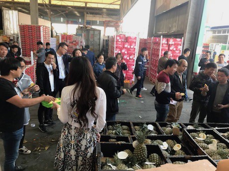 “Top Fruit Sdn Bhd是三个被准许出口菠萝到中国之一的加工厂之一,该厂已将马来西亚的首批新鲜菠萝在我们的 ‘Royal Mas”’品牌下出口到中国。为了方便营销,Top Fruit Sdn Bhd在上海以‘上海梨马贸易有限公司’的名字建立了自己的营销办公室,由Vincent Chan和Sophia Cai在中国为客户提供实时的销售和营销服务。”。