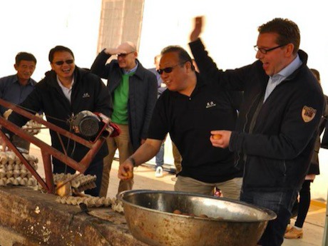 欧洲客人在向营养液中加鸡蛋