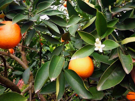 为了保证果子的持续挂枝,进入成熟期后,山橙的果农们每次将只采摘部分优秀的果实,而保留剩余的果实继续挂树。花果同树不仅为山橙的基地带来一道独特的风景线,挂树时间长的特点也使消费者即使在明年的三四月份时期仍能购买到刚从树枝上摘下来的新鲜山橙。