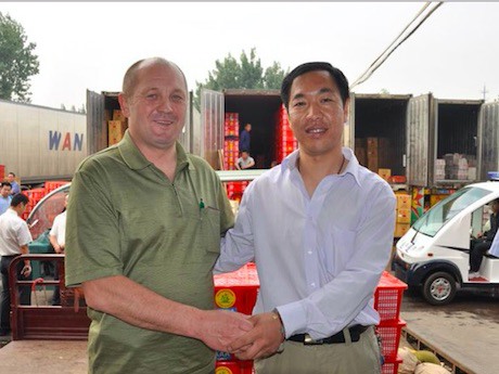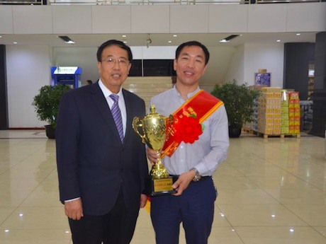 公司董事长赵新文(右)被评为北京·新发地农产品批发市场进口水果大王