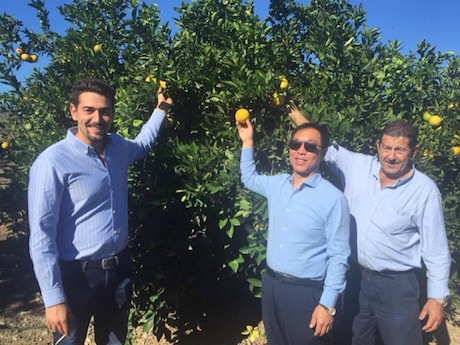 公司董事长赵新文(中)参观西班牙(瓦伦西亚)果园