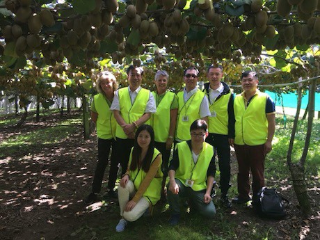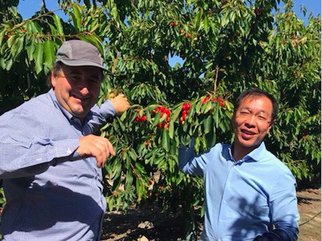公司董事长赵新文(右)参现智利San Francisco车厘子果园
