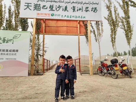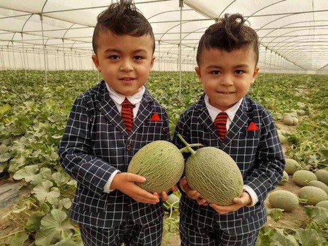 亲亲果园和维吉达尼新疆团队阿布的双胞胎儿子在种植基地