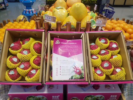 “本公司位于海南东乐县,拥有占地1000多亩的金都一号红心火龙果种植基地,从事红心火龙果的种植,推广和销售。目前,山东省是我们的火龙果的主要销售区域,其中,60%-70%被销往各大超市,30%-40%被销往批发市场。为了更好地了解海外市场的需求和运作,我们将于明年二月参加在德国柏林举办的果蔬展会,希望能够找到出口商机。”