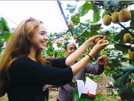 海外游客在中国猕猴桃种植基地采摘猕猴桃