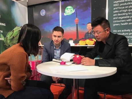 “多年来,欧洲经销商主要从越南、哥伦比亚等国进口火龙果以满足当地市场的需求,即便如此,也很难做到全年不间断的采购供应,这也是我们的火龙果在展会上如此受欢迎的原因之一。目前,来自西班牙、俄罗斯以及荷兰的经销商已经与我们签署了采购意向书,此外,墨西哥的几家公司也有意购买我们的种苗及技术。”