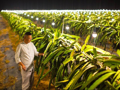 海南柔鸣红心火龙果有限公司创始人刘新元先生在火龙果种植基地