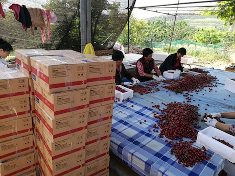 “除了产区,影响樱桃品质的另一个关键因素是采摘期,农户往往是根据收购商的要求进行采摘,销往批发市场的樱桃一般在6成熟时即被采摘。为了确保口感更佳,我们供应给采购商的樱桃则是在8成熟时才进行采摘。”
