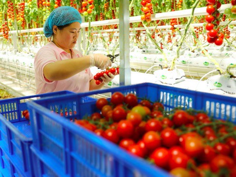 北京极星农业有限公司的总经理徐丹在小番茄种植基地