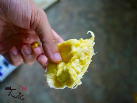 “文记榴莲的果园都是深度合作的园子,每个园子都有文记专属编号,编号会被打在每颗榴莲的柄上,以便追溯记录,针对性地提高品质。每年,所有园子都会被重新评估一遍,以选出最好的园子。目前统计的数据是在泰国最好的产区,每107个园,只有1个是我们能用的。”