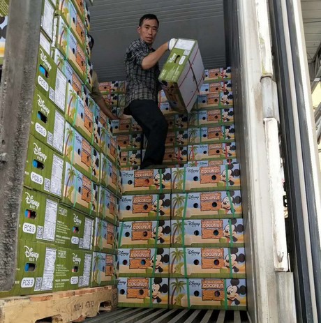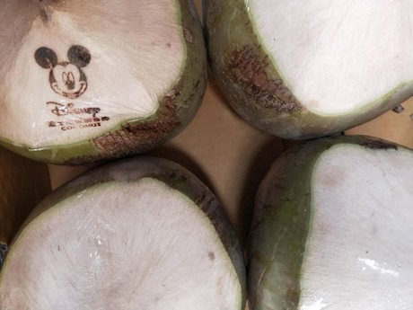 上海农富果品公司开始利用激光把迪士尼的米老鼠刻印在椰青皮上。该公司经理说:“我们的椰青是在泰国种植的,在泰国我们拥有种植基地。椰青收获之后,通过海运的方式运往中国,之后被分销到各大连锁店及市场批发市场。”
