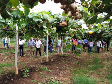 业内人士在DORI黄金奇异果种植基地进行产业交流