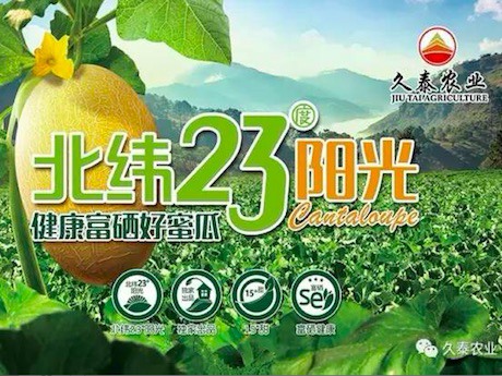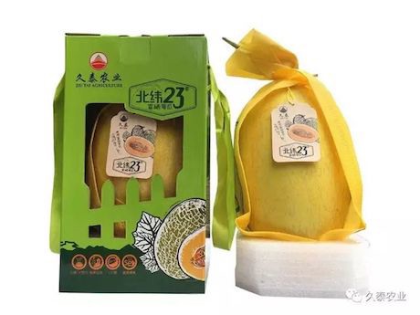 “北纬23°蜜瓜是久泰农业旗下的一个高端水果品牌,在国内拥有比较高的知名度。久泰农业“北纬23度”蜜瓜选用专业育种公司经过多年研发的蜜瓜新品种,集合了多种哈密瓜的优良性状。 ”