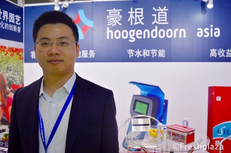 来自豪根道(北京)农业技术有限公司的销售经理吴业雄。豪根道(北京)农业技术有限公司与全球合作伙伴一起提供可持续的自动化解决方案,无缝地协调园艺组织中的所有过程和系统。模块化软件确保了可用资源,如天然气、化肥和水被尽可能有效地利用。