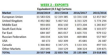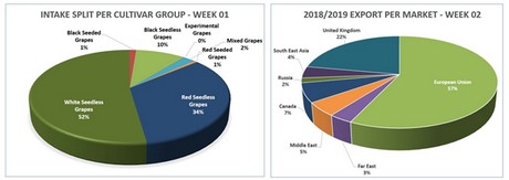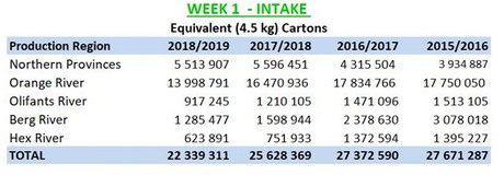 SATI报告说,这个早期地区在收获季结束前仍然有大约2至3周的包装时间。种植者对良好收获气候和葡萄品质表示满意。预计该区域产值在将在估计范围。