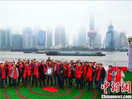 近日,智利樱桃在上海创造“最长的水果队列”吉尼斯世界纪录。智利水果出口商协会樱桃委员会使用了24638个深红光润的樱桃,一个接一个依次紧贴码放,随着“樱桃线”的延展、弯曲、回转,勾勒出两颗“手牵手”相连的巨大樱桃图案。