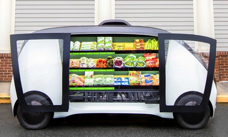 最初,Robomart将在波士顿及周边地区提供快餐类超市产品。该迷你冷藏车拥有遥控系统,它货架上的新鲜产品由沿途供应点存贮摆放。