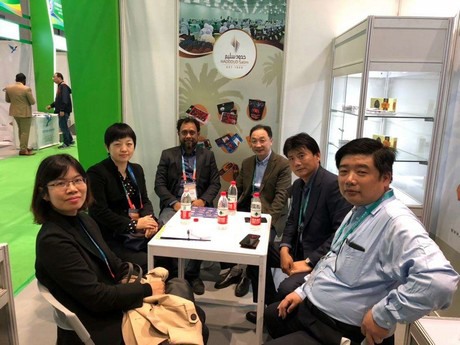 在第一届中国进口博览会上与椰枣展商洽谈