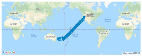 Purfresh客户的实时监控。该系统允许客户查看他们的集装箱在海上的位置,船舶的行进路径,以及集装箱内的温度。