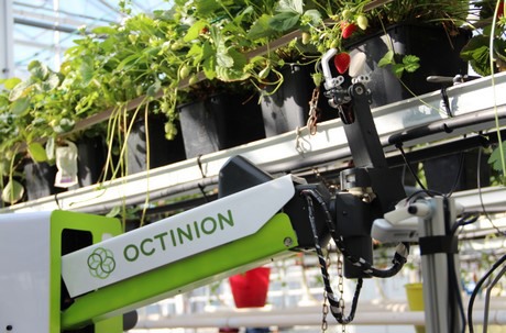 然后由收获机器人对草莓进行分类和包装,之后,由随附的机器人搬开板条箱。此外,Octinion提供收成预测和紫外线机器人来对抗霉变。