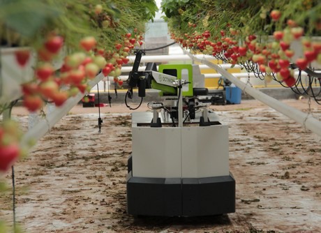 全世界都在风靡利于机器人采摘收割农作物,但目前为止,还没有用于收获草莓的机器人。在柏林果蔬展览会Fruit Logistica之后,该机器人正式面世。比利时Octinion公司推出了Rubion,这是一种完全自主的收割机器人,和其他机器人一起通力合作,可以接替大量的手工劳作。 Octinion科技集团首席执行官Tom Coen说:“机器人目前每隔五秒就摘一个草莓,速度可以和人工媲美。”
