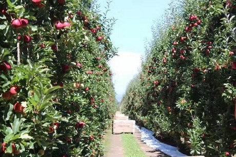 “新西兰苹果栽培普遍采用矮化密植方式,栽植密度一般为3.5×2米,也有采用3×1米栽植密度的果园。树形采用简便易行的细长纺锤形或高纺锤形;他们的成功还得益于成熟而完善的苹果采前、采中、采后一整套产业链。苹果达到一定的成熟度后统一采摘,采摘后的苹果在分拣、包装等过程中,通过质量感测技术自动区分苹果质量,从而确保了新西兰苹果以最佳状态、最佳时间内出口到合适的市场。”