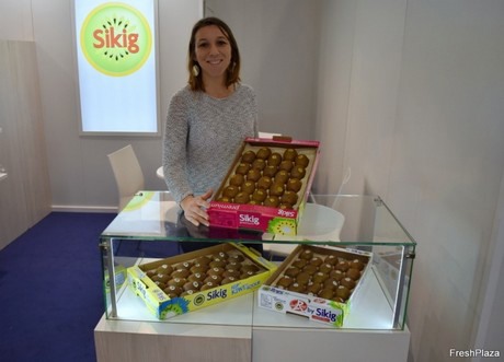 Sikig的Christelle Broutin在Fruit Logistica展会展示该公司的各种产品。