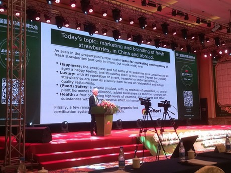 中国占世界草莓产量的40%,而荷兰所占份额约为0.5%。举办继2018年之后的第二届国际草莓品牌大会的目的是促成中国草莓产业的专业化。但分享知识也很重要。”中国人知道,这是推进专业化的最佳途径。”