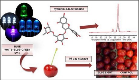 荷兰果农组织NFO日前透露, 根据斯洛文尼亚卢布尔雅那大学的研究,在樱桃的储存期间,光照会影响樱桃的质量。研究人员测试了各种光波长, 发现蓝光有效提高了樱桃中花青素的含量。储存十天后,樱桃的红色明显比未经处理的樱桃暗。除了蓝光外,还测试了UV-B以及白光,蓝光和绿光的组合。
