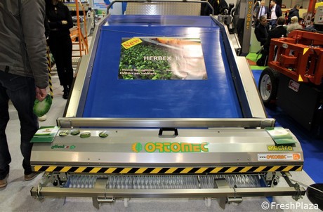 在德国柏林的国际果蔬展览会Fruit Logistica上,Ortomec公司展示了带有不锈钢框架的新Herbex II型号的电动版本。拖拉机动力版本和配箱收割系统的型号,将于10月上市。