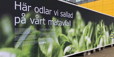 Bonbio是一家废物处理公司,目前与宜家合作,对其食品废弃物进行更长时间的评估。他们解释说:“大多数宜家瑞典食品废弃物已经进入各种沼气厂,包括赫尔辛堡的沼气厂,由我们的姊妹公司OX2 Bio经营。在沼气厂,Bonbio将食物垃圾精炼成植物营养素,然后用于在宜家百货公司旁边的特制栽培容器中种植多叶生菜。通过控制光照,温度,灌溉和养分供应,我们不依附于季节,可以全年保证大量生产当地种植的新鲜植物。”